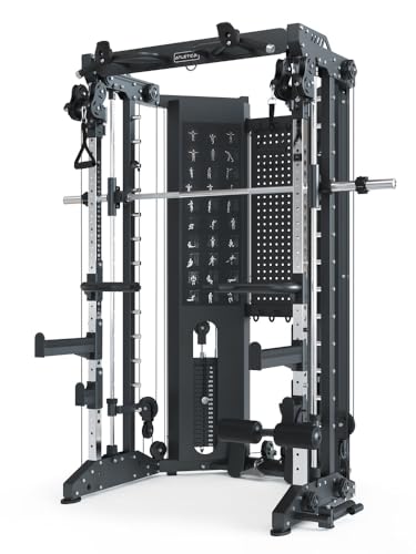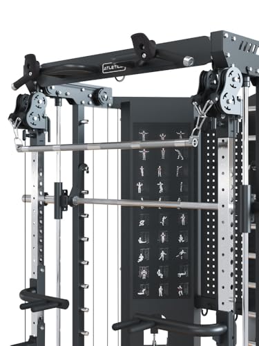 - Eine Multi-Grip-Klimmzugstange mit Boulder-Griffen, Langhantel-Ablagen, ein Landmine-Trainer und das umfangreiche Zubehörset erhöhen die Übungsvielfalt und machen es zu einem All-in-One-Gerät für das Training aller Muskelgruppen