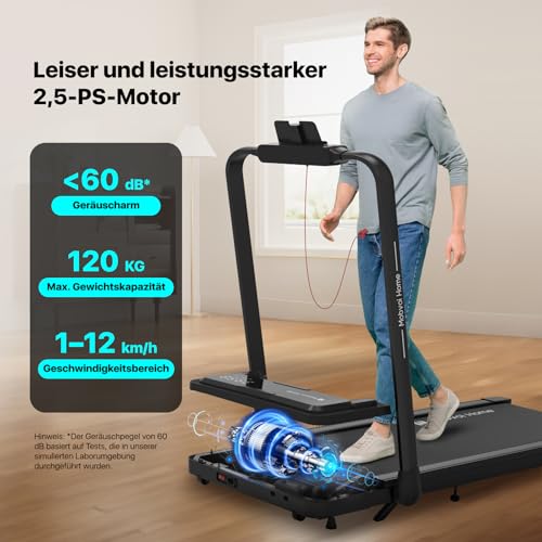 【LEISTUNGSSTARKER UND LEISE MOTOR】Mit einer robusten Leistung von 2,5 PS bringt er Sie mühelos auf Geschwindigkeiten von bis zu 12 km/h. Doch trotz seiner Leistung arbeitet er leise und erzeugt einen Geräuschpegel von unter 60 dB. Genießen Sie eine ruhige Trainingsumgebung, ungestört von Lärm, und gehen Sie dabei mit Leichtigkeit und Anmut an Ihre Grenzen.