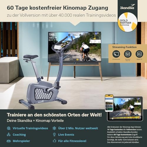 Skandika Wiry Ergometer Heimtrainer 11kg Schwungmasse 24 Trainingsprogramme 32 Widerstandsstufen Magnetbremssystem Bluetooth Kinomap App-Steuerung Transportrollen